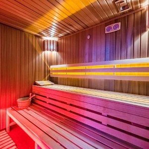 A szálloda wellness-fitness részlege két részre van osztva: tágas edzőterem, - modern felszerelésekkel, gépekkel - hogy ki tudd hozni magadból a maximumot és a csendes szauna és jacuzzi, a tökéletes kikapcsolódáshoz. A két helységet egy nagy üvegablak választja el egymástól.