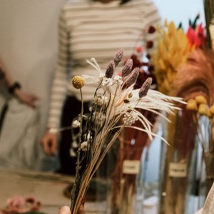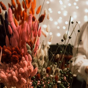 az előre kikészített, képre kerülő szárazvirág dekorációkat,