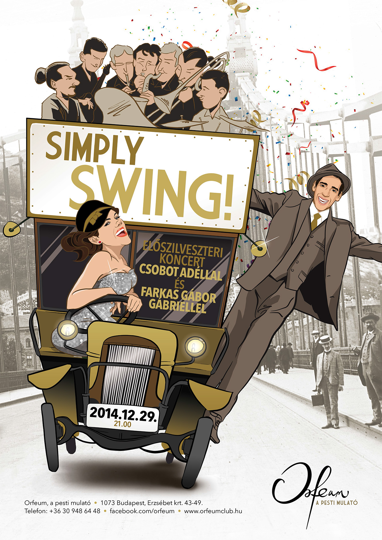 Ez alkalommal ismét karöltve búcsúztatják az óévet egy szórakoztató és hangulatos, hamisítatlan swingesttel, amelyet héttagú élő zenekar kísér.