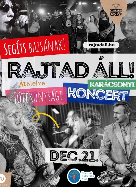 SEGÍTS A JELENLÉTEDDEL! A Rajtad Áll Alapítvány JÓTÉKONYSÁGI NAGYKONCERTJE a hazai zenei élet elismert résztvevőinek összefogásával jön létre 2025. december 21-én az ANALOG MUSIC HALL nagyszínpadán. Az esemény bevételét idén az Átölelve Alapítványnak aján